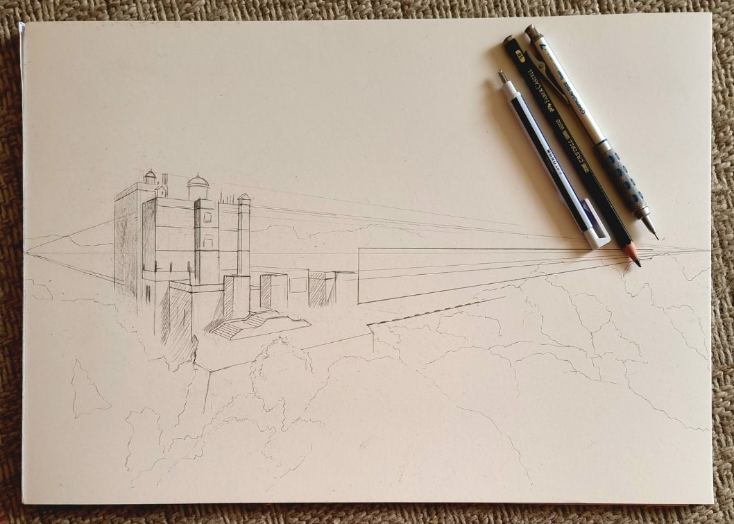 Would you believe that i only live 20 minutes from this stunning Castle? i didn't, and yet i've lived in Mansfield my entire life. What an amazing place. The views from here are equally breathtaking. How could i not want to capture it on paper.
