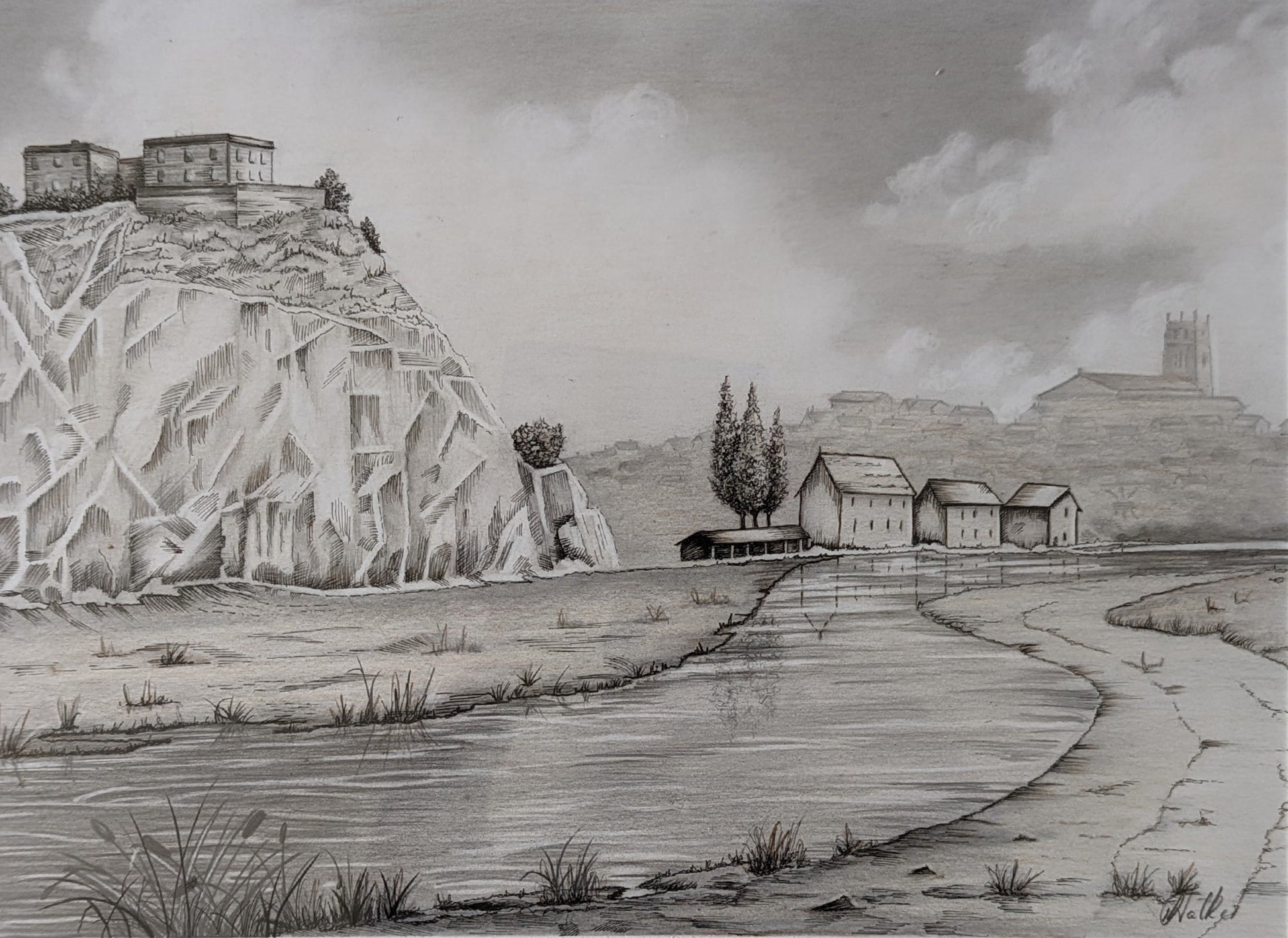 A3 Nottingham Castle circa 1831 River Leen